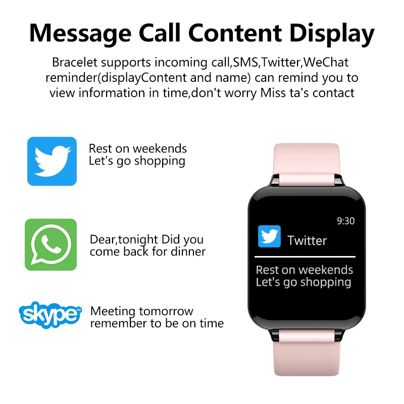 2. Reminder function: incoming call, SMS, QQ, WeChat reminder (display content and name). Facebook, Whatsapp, Twitter, Skype, and other foreign social software reminders, alarm clocks (three sets of alarm clocks), sedentary reminders.