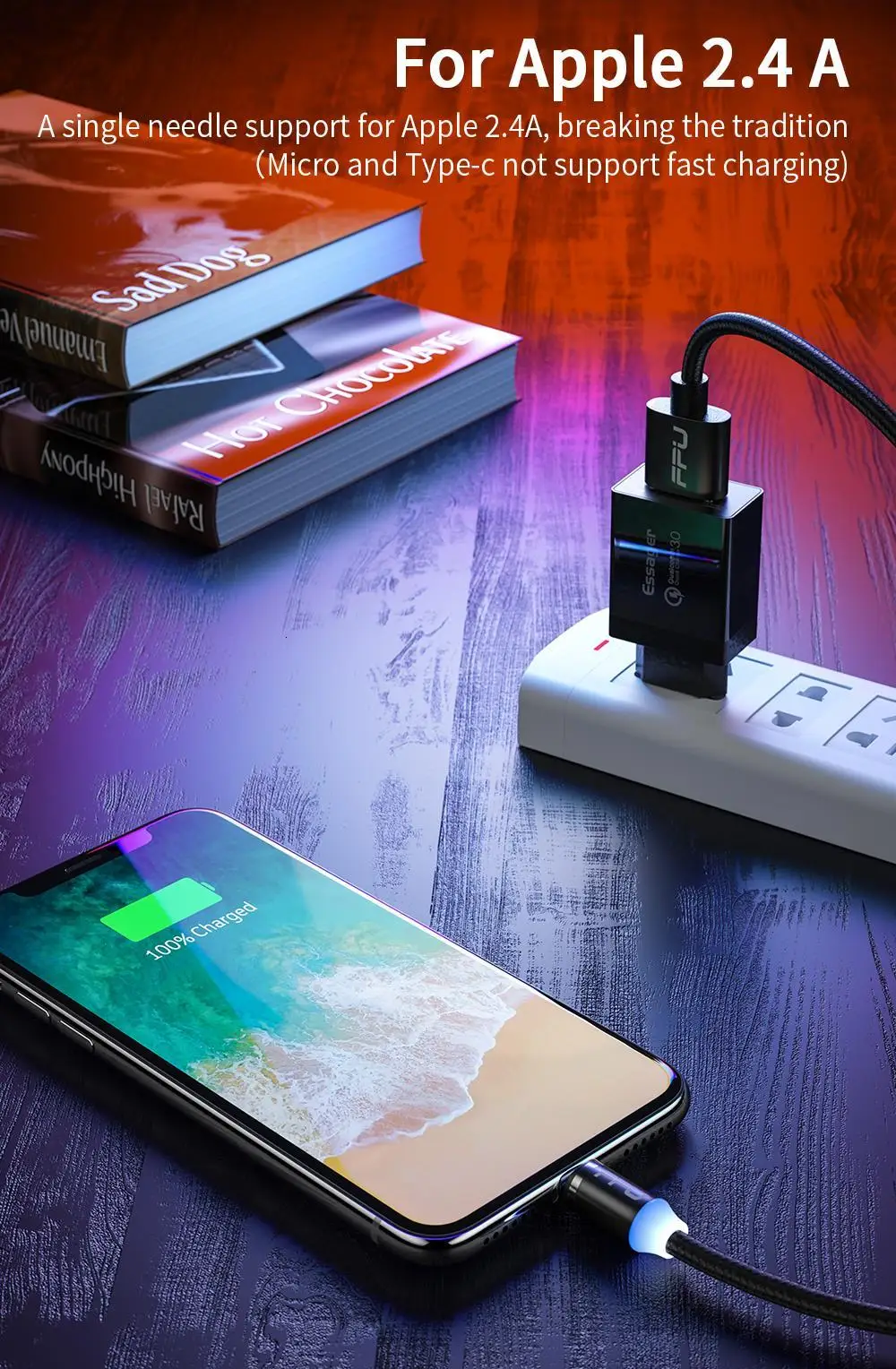 3. 2.4A Fast Charging Only for iPhone, Not Support Fast Charge for Micro USB and Type-C Devices