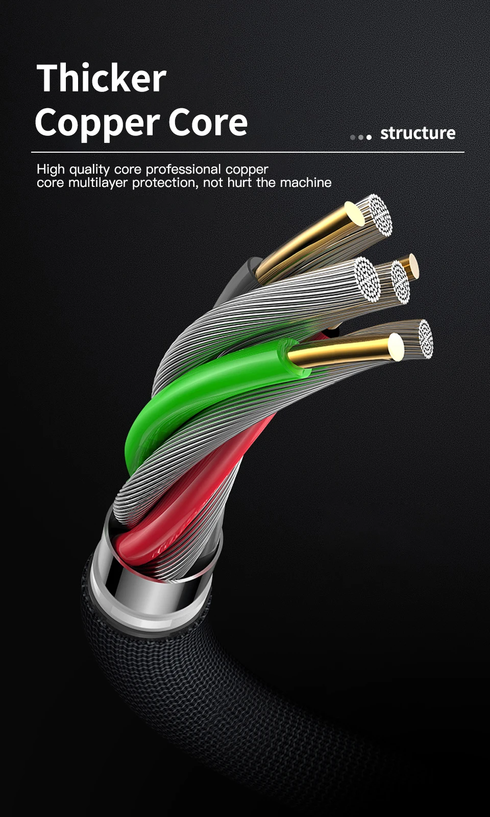 ●Because the copper core is conductive it has loss when charging. The 3 meters long cable can only reach 1A current speed.